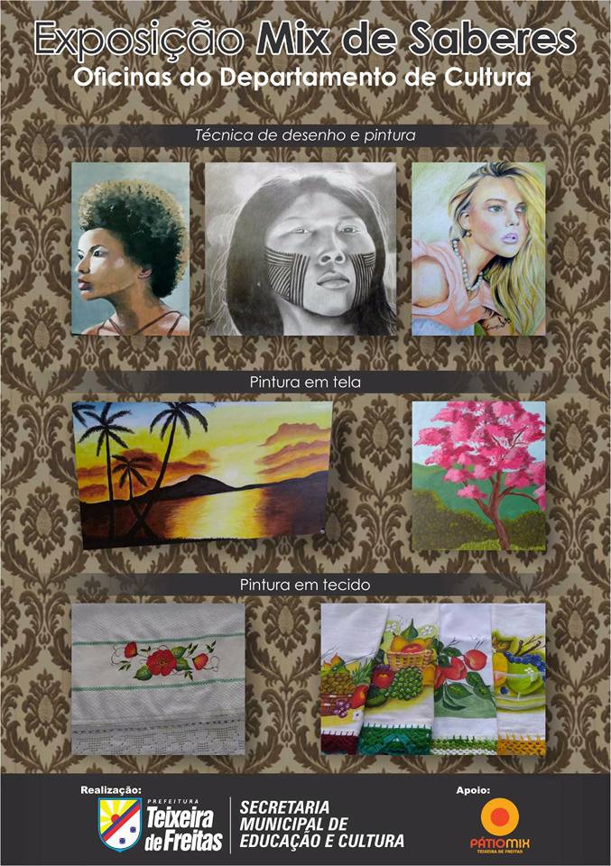 A exposição Mix de saberes acontecerá de 1° a 04 de dezembro, no vão central do Páti Mix. Ela estará aberta nesses dias, das 10 às 22 horas. O Pátio Mix vem disponibilizando ao Departamento de Cultura esse espaço, que se tornou local cativo para os artistas plásticos teixeirenses.