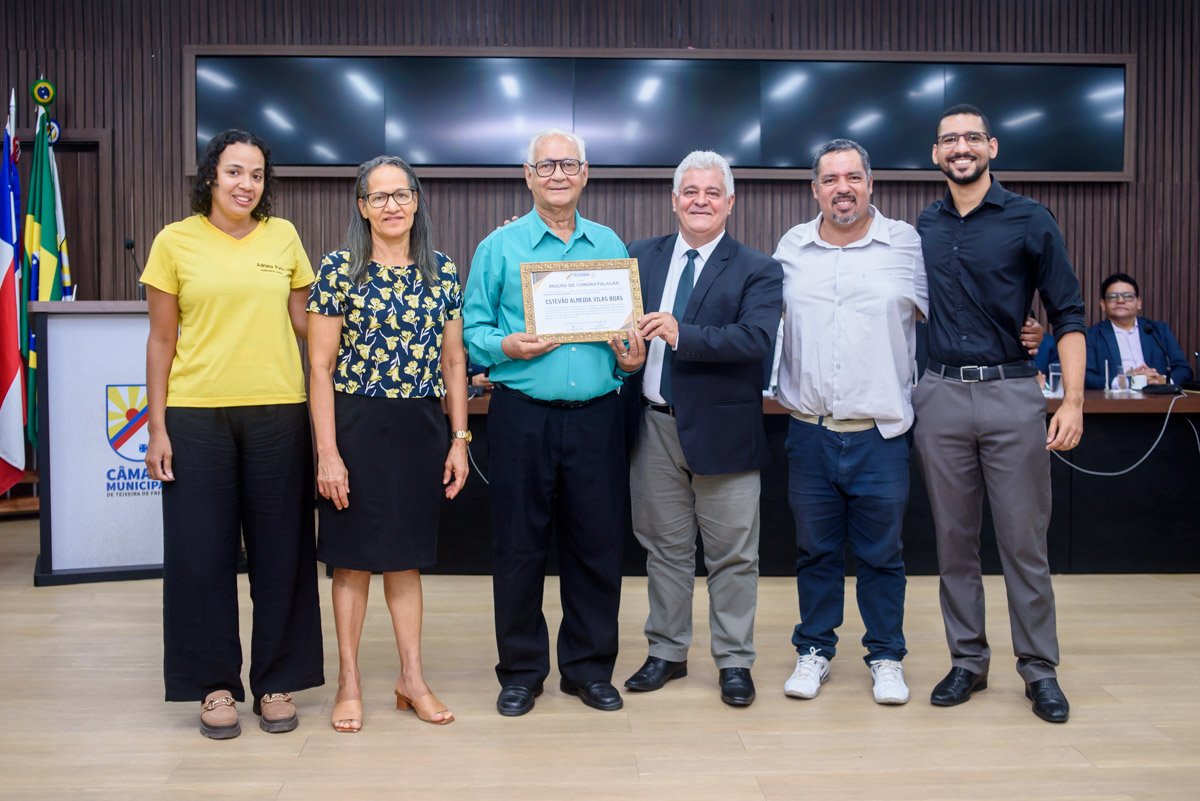 Durante a sessão ordinária realizada na última terça-feira (10), no plenário Francistônio Alves Pinto, o vereador Ronaldo Cordeiro realizou a entrega de moções de congratulação a cidadãos que têm contribuído de forma significativa para o desenvolvimento de Teixeira de Freitas. As homenagens foram concedidas por meio de moções previamente aprovadas por unanimidade pelos vereadores.