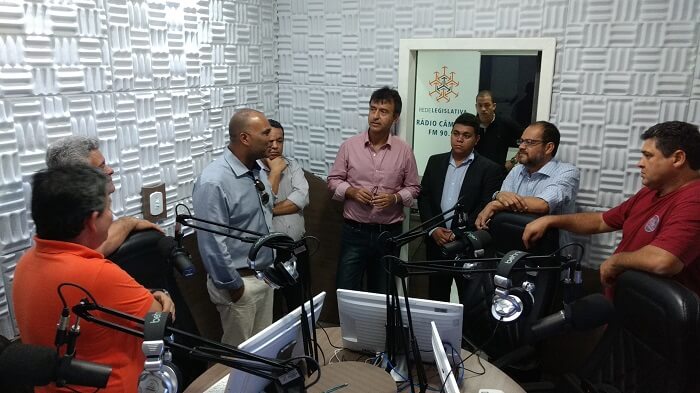No início da noite desta terça-feira (06), o secretário André Curvelo e o coordenador Edmundo Filho visitaram as instalações da Rádio Câmara FM, onde foram recebidos pelo presidente da Câmara Municipal, vereador Agnaldo Teixeira Barbosa, o “Agnaldo da Saúde” (PR). O secretário estadual de comunicação social André Curvelo visitou o memorial da casa, as futuras instalações da TV Câmara e conheceu os estúdios da recente inaugurada Rádio Câmara 90,9 FM.